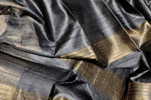 The Bhagalpur tussar saree is woven on both pit looms and frame looms, by weavers who have typically learned their craft within the family and the community. The weave structure of most Bhagalpur tussar is relatively straightforward: a plain weave or simple twill that allows the natural texture and colour of the tussar yarn to speak for itself without the distraction of complex structural patterning.